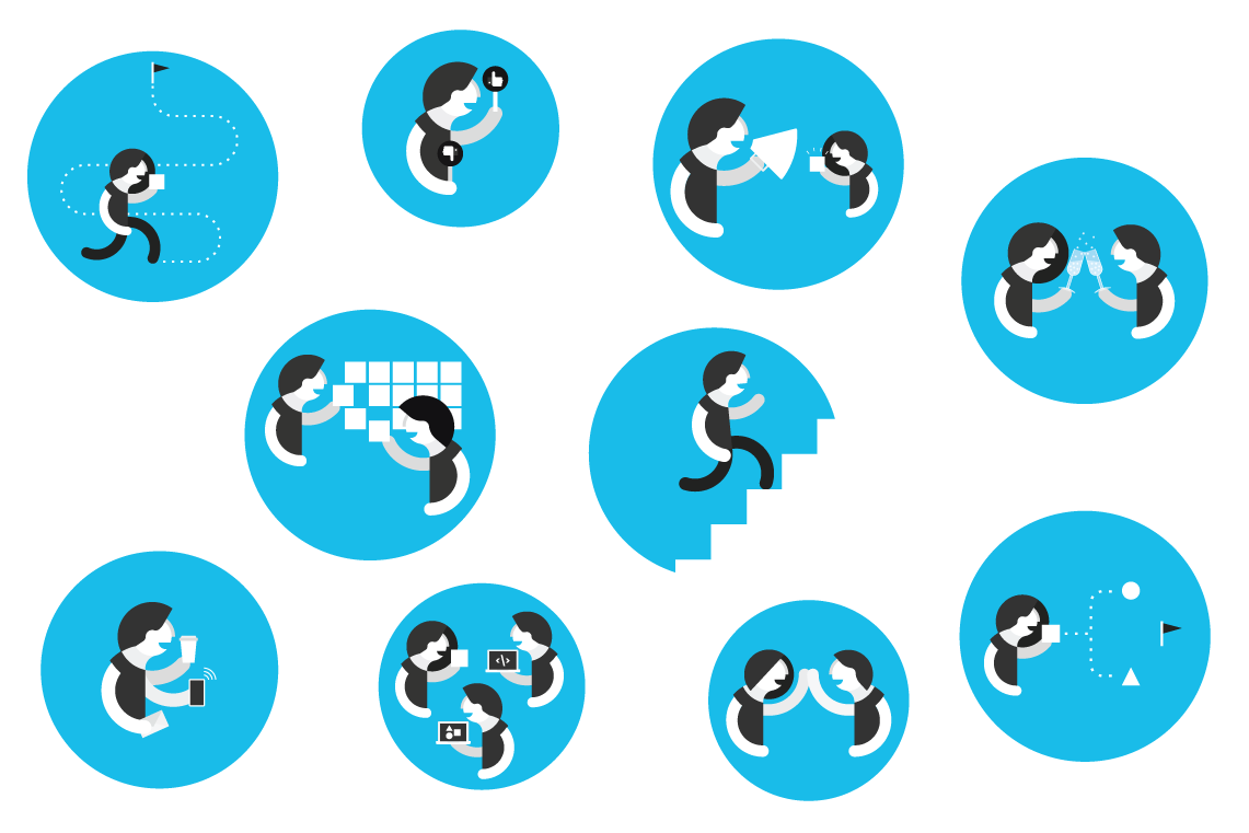 Deze illustraties zijn gemaakt om een uitleg te geven over de manier van werken binnen Freshheads en de rollen die daarbij komen kijken.